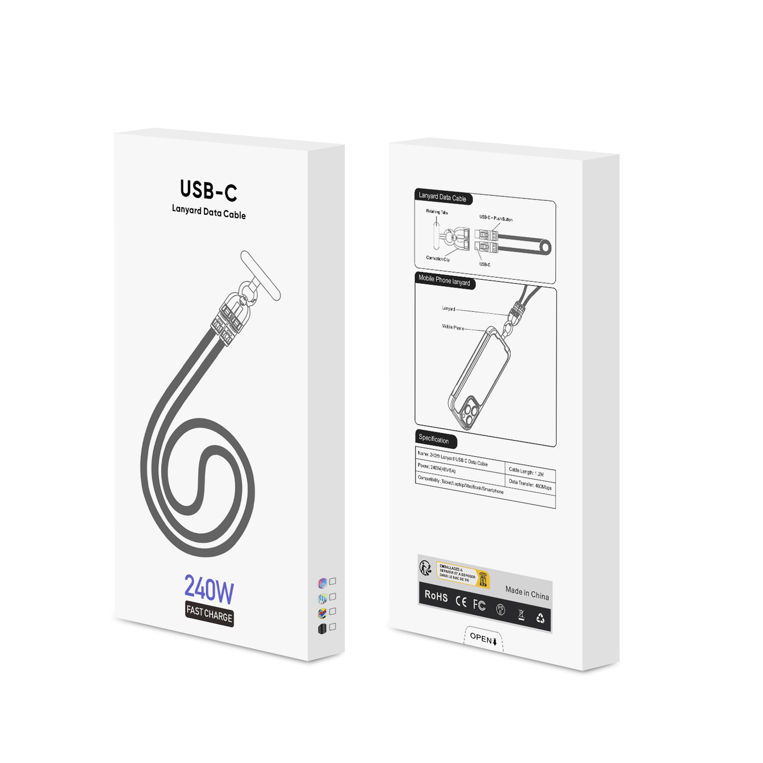 URIZONS 2 in 1 Function Cross-body Neck Strap + Braided Colorful TYPE C to C USBC PD 240 Watt 5A Charging Data Phone Charger Cable Type C to Type C Data Cable Support Fast Charging and Data Transmission 2 in 1 Cable 1.2M Length
