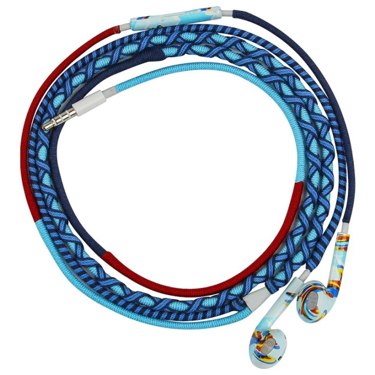 Handmade rope earphone with mic for 3.5mm plug iphone and android devices
